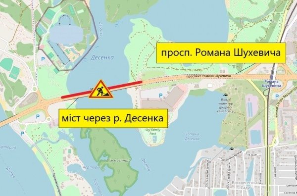 31 січня, з 9:00 до 19:00, частково обмежуватимуть рух транспорту мостом через р. Десенка. Про це повідомляють у КК «Київавтодор».