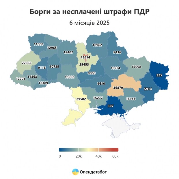 За перше півріччя 2025 року в Єдиному реєстрі боржників зафіксовано 375 810 справ через несплату штрафів за порушення ПДР. Хоча порівняно з минулим роком показник дещо знизився, він залишається значно вищим за довоєнний рівень. Столиця на першому місці за кількістю проваджень, а серед боржників усе більше жінок. У 2025 році на них припадає вже 21% усіх справ - проти 8% напередодні повномасштабної.