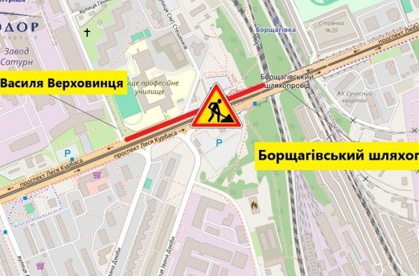 Дорожники проводитимуть поточний ремонт покриття на ділянці від Борщагівського шляхопроводу до вулиці Василя Верховинця.