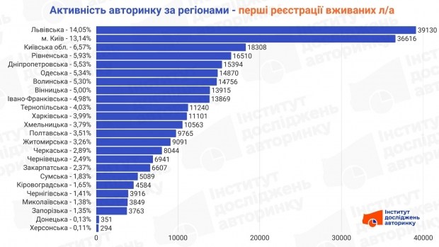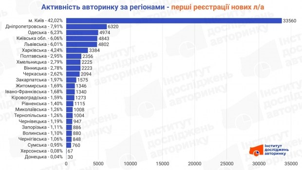 Сегмент «свіжопригнаних» автівок чітко орієнтований на західний кордон та фінансові центри. Тут першість за Львівською областю (14,05%), яка є головним логістичним шлюзом для вживаного транспорту з Європи.