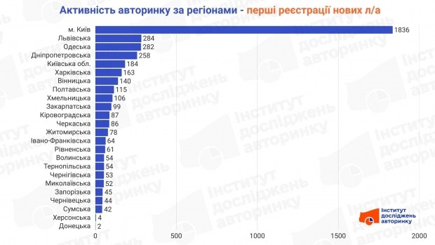 Ринок нових автомобілів демонструє найбільш радикальну централізацію. Київ фактично акумулює майже половину всіх продажів у країні, що пояснюється не лише високою купівельною спроможністю киян, а й реєстрацією великих корпоративних парків саме у столиці. Також свій внесок роблять лізингові компанії та державні підприємства з офісами у столиці. Львівська, Одеська та Дніпропетровська області йдуть наступними з великим відривом, але стабільно утримують статус регіональних лідерів. В інших частинах країни продажі нових авто залишаються на значно нижчому рівні, що підкреслює глибокий розрив у бізнес-активності між столицею та регіонами.