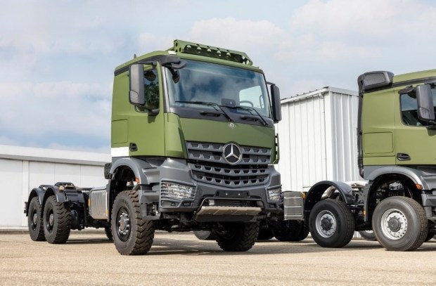 Першим прикладом такої інтеграції став повноприводний військовий вантажний автомобіль Mercedes-Benz Arocs 4463 з колісною формулою 8x8, який вже продемонстрували на спеціалізованій військовій конференції Log.Net 2026 у німецькому Кобленці. Цей автомобіль оснащено комплексом MOSAIC Ground Autonomy Kit, що дозволяє підключити машину до мережі безпілотних систем і використовувати її як частину цифрового бойового середовища.