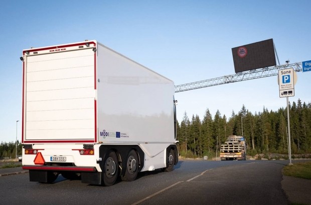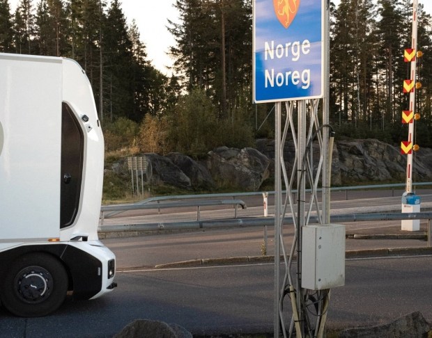 Безпілотний перетин кордону між Швецією та Норвегією в рамках тесту здійснила електрична безкабінна вантажівка Einride T-Pod: контрольно-пропускні пункти фура з вантажем пройшла за всіма правилами й без докорів працівників служб контролю.