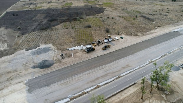 На відведеній ділянці землі вже ведуться роботи з улаштування земляного полотна та укладання щебенево-піщаної суміші.