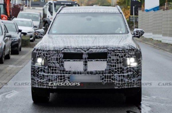 На перший погляд закамуфльований прототип може здатися лише глибоко модернізованою версією актуального SUV, однак уважний аналіз показує значно глибші зміни. BMW вирішила зберегти одну з найбільш дискусійних дизайнерських особливостей моделі - фірмову «роздвоєну» світлодіодну оптику. Водночас самі блоки фар стали компактнішими й розмістилися нижче, а центральне місце в передній частині тепер займає ще масивніша решітка радіатора. Передній бампер отримав нову форму зі значно більш геометричними та квадратними повітрозабірниками, що підкреслює статус і габарити флагмана.