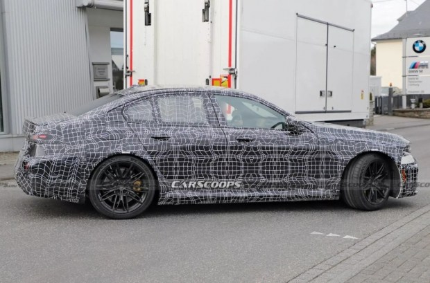 Цього разу тестові автомобілі вкриті менш щільним камуфляжем, що дозволило детальніше розгледіти ключові зміни. Судячи з доступних знімків, BMW поступово інтегрує в M5 нову дизайнерську мову Neue Klasse, але робить це обережно, з огляду на консервативні вподобання аудиторії цієї моделі. Передня частина отримує характерний «візорний» вигляд, знайомий за електричними моделями iX3 та i3 нового покоління. Традиційна решітка радіатора в її класичному вигляді фактично трансформується: зона «ніздрів» виглядає частково закритою, а основні функції охолодження, ймовірно, передані вузькому горизонтальному повітрозабірнику під нею. Додатково агресії додає перероблений передній бампер із великими повітряними каналами та виразним сплітером.