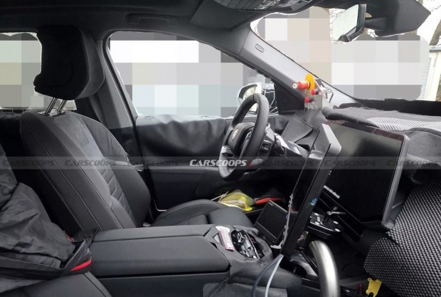 Салон прототипа також не залишає сумнівів щодо його призначення. Навіть крізь маскування видно спортивне кермо без вертикальних спиць, контрастну червоно-синю прострочку та фірмові кнопки M, які поки що заклеєні стрічкою.