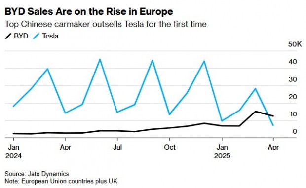 Китайський автовиробник BYD вперше обігнав американську Tesla за кількістю проданих електромобілів у Європі, повідомляє Bloomberg. Цю зміну вже називають переломним моментом для європейського автомобільного ринку.