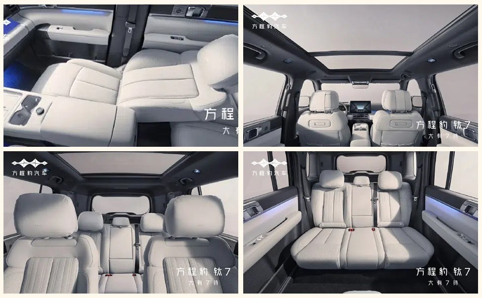 У салоні BYD FCB Tai 7 встановлено цифровий щиток приладів та 15,6-дюймовий тачскрін, також є проєкція на лобове скло. Окремі монітори встановили для задніх пасажирів.