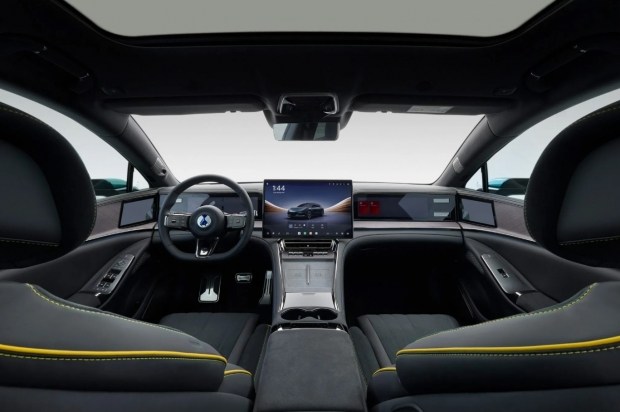 Електромобіль BYD Denza Z9 GT доволі багато оснащений. Його салон оздоблений шкірою, а на передній панелі встановлено три екрани. Також є проєкція на лобове скло, електропривод і вентиляція сидінь, панорамний дах, камери замість дзеркал, холодильник, пневмопідвіска та керовані задні колеса.