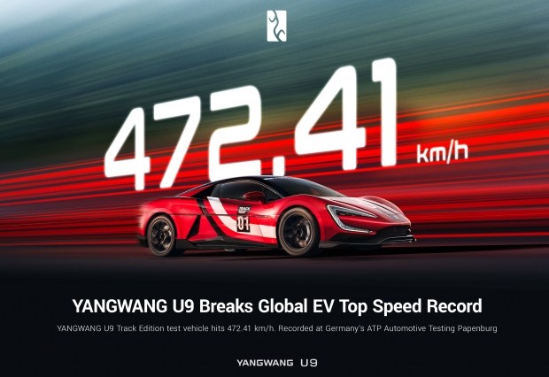 Китайська компанія BYD знову встановила новий світовий рекорд серед електромобілів завдяки своєму гіперкару Yangwang U9 у модифікації Track Edition. Під час тестів на трасі ATP Automotive Testing Papenburg у Німеччині цей чотиримоторний електричний болід розігнався до 472,41 км/год (293,54 миль/год), офіційно відібравши звання найшвидшого електрокара у Rimac Nevera R, який у липні 2025 року зафіксував максимальну швидкість 431,45 км/год (268,2 миль/год).