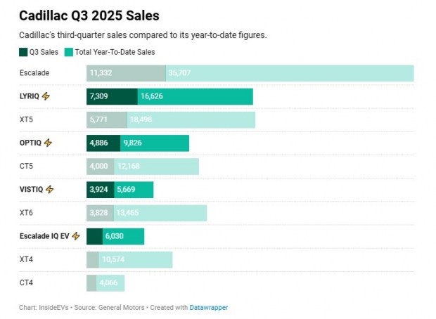 Загалом у третьому кварталі Cadillac реалізував 18 383 електромобілі, що є безпрецедентним результатом для компанії. Це доводить, що ставка на електрифікацію була стратегічно правильною. Аналітики InsideEVs зазначають, що успіх Cadillac у Q3 став найпереконливішим доказом того, що електромобілі тепер є центральною частиною майбутнього бренду.