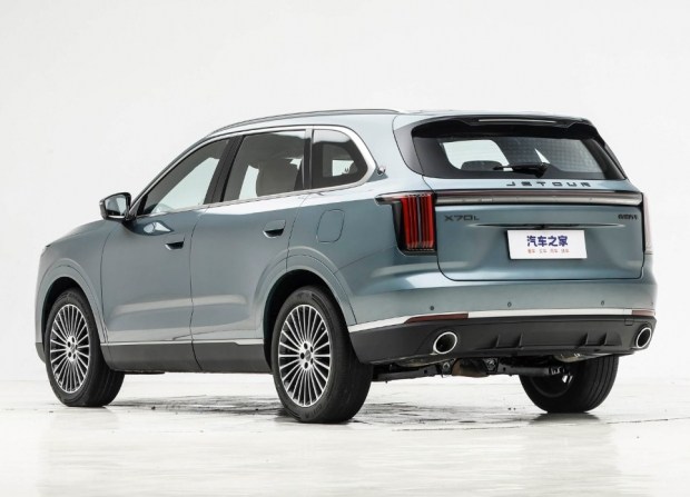 Jetour X70L отримав абсолютно новий для лінійки дизайн, у якому акцент зроблено на масивній решітці радіатора з багатопластинчастими хромованими вставками, вертикально орієнтованій головній оптиці та С-подібних денних ходових вогнях. Силует моделі підкреслюють напівприховані ручки дверей, корпуси дзеркал заднього огляду в колір кузова та хромовані декоративні елементи. Ззаду кросовер виділяється вузькими горизонтальними ліхтарями у сучасному стилі та подвійною вихлопною системою з чотирма патрубками. Для покупців запропоновано кілька варіантів кольору, серед яких відтінки синього, білого, чорного та світлі металіки.