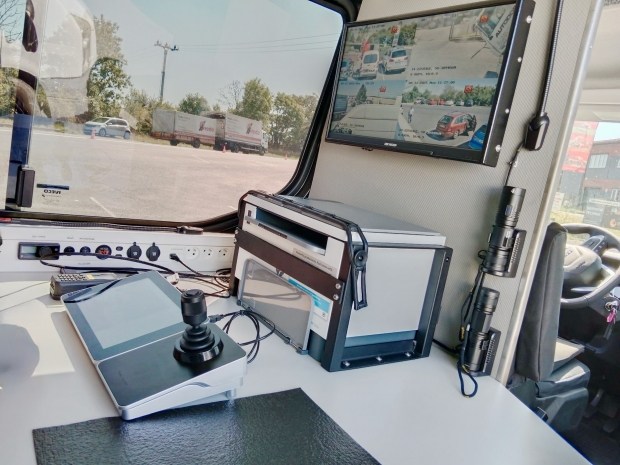 Однак всередині це доволі інноваційний мобільний центр моніторингу з апаратурою та схованими за риштуванням багажника на даху чотирма обертовими на 360 градусів камерами. Ними оператори керують з салону автомобіля.