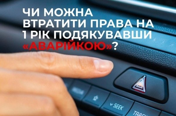 Кілька днів мережею поширюється інформація, що за висловлення подяки «аварійкою» можна втратити водійські права на рік.