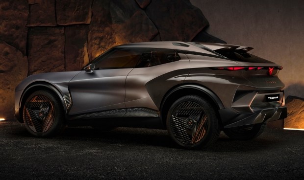 Новий CUPRA Tindaya - 4,7-метровий спортивний кросовер із виразним дизайном, створений на сучасній платформі SSP. У нього виражений «ніс», розширені крила та тоненькі фари. Авто отримало агресивний обвіс, чималий спойлер та оригінальні 23-дюймові диски.