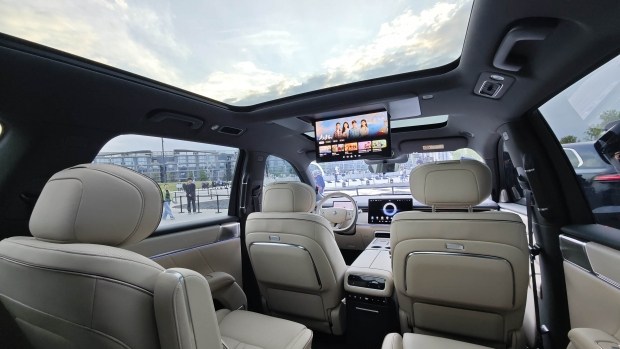 У салоні встановили вузький цифровий щиток приладів та великий 15,6-дюймовий тачскрін, ще один 15,6-дюймовий монітор встановили для задніх пасажирів. Крім того, є розкладні столики та холодильник. Також комплектація включає камери кругового огляду, набір систем безпеки, електропривод передніх крісел, підігрів, вентиляцію і масаж сидінь першого та другого ряду.