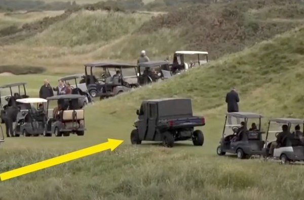 Машину цими вихідними помічено у Шотландії, коли президент грав на полі для гольфу Trump Turnberry у Південному Ейрширі. І хоча Трамп там пересувався на стандартному білому гольф-карі, громіздкий силует броньованого гольф-кара рухався слідом.