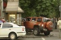 VIP-внедорожники не поделили перекресток и чуть не разнесли пост ГАИ07 липня 2010В центре Киева на углу улиц Шелковичной и Институтской столкнулись Porsche Cayenne и Hammer H3