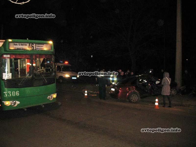 29-летний водитель автомобиля «Шевроле», двигаясь по пр. Московскому со стороны ул. П. Свистун в направлении пр. М. Жукова, по неизвестным причинам столкнулся с троллейбусом, под управлением 59-летнего мужчины, который двигался в попутном направлении с последующим наездом автомобиля «Шевроле» на препятствие (электроопору).
