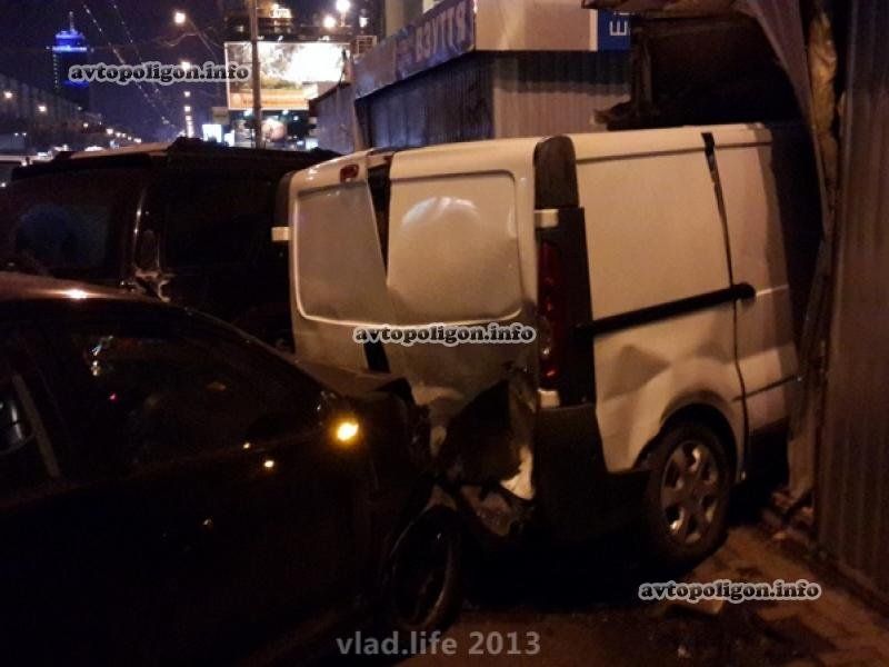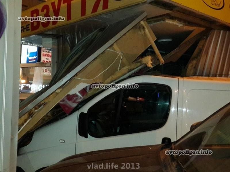 От мощного удара Renault Trafic врезался в киоск, углубившись в него более чем на метр.