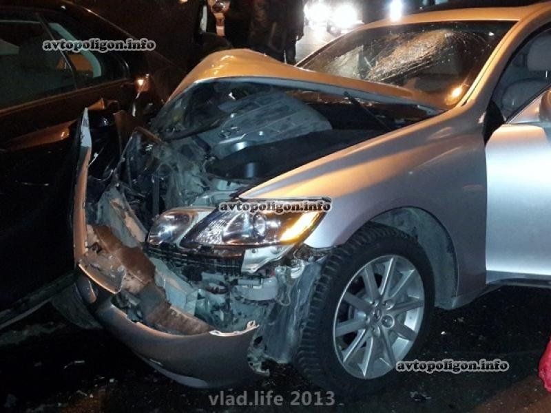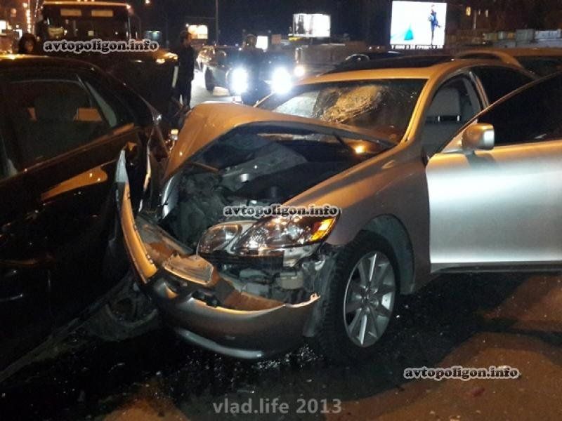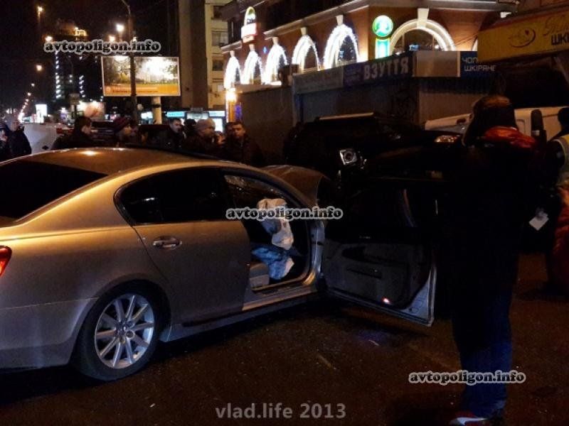 Предварительно, водитель Lexus GS300 на высокой скорости двигался по проспекту Победы от м.Шулявская к пл.Победы. В какой-то момент водитель не справился с управлением, выехал в правый ряд и врезался в 3 припаркованные автомобиля - Renault Trafic, Volkswagen Jetta и Great Wall.