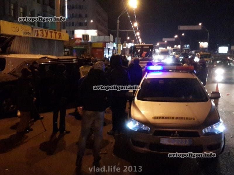 Как сообщает корреспондент "Автополигон", данное ДТП произошло в Киеве на проспекте Победы 1/33, напротив метро КПИ, 22.12.2013 в 19:35.