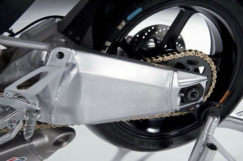 Главной фишкой Pierobon X85R является кастомная решетчатая рама, изготовленная из 28-мм трубы. Конструкция продумана так, что замена двигателя происходит легче, чем на Ducati Panigale. Инженеры Pierobon дополнительно спроектировали свою воздушную коробку под особенности конструкции шасси. По объему соответствует воздушной коробке Ducati 1199 Panigale RS13. Другой важный аспект. Задний подрамник имеет решетчатую конструкцию и изготовлен из алюминия. Он крепится к стальной раме, а не к задней головке двигателя.