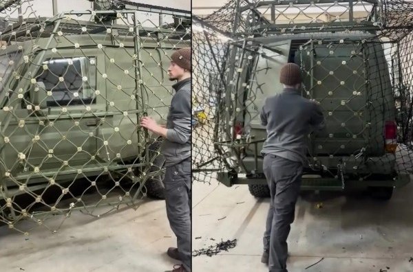 Сьогодні на передовій автомобілі, у тому числі й евакуаційні, потребують ефективного антидронового захисту. Засоби РЕБ при цьому вже не можуть протидіяти безпілотникам на оптоволокні. Тому вихід один - встановлювати навколо автомобіля купол з грат або сіток.
