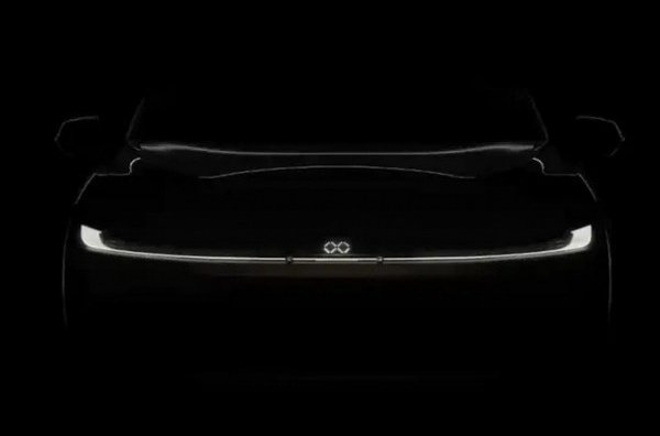 На оприлюдненому зображенні видно сучасний світлодіодний елемент, що простягається на всю ширину передньої частини автомобіля, що надає йому впізнаваного футуристичного вигляду. У дизайні також простежується рельєфний капот і компактні дзеркала заднього огляду. По центру розташована емблема з двома світними ромбами, які символізують належність до нової електричної лінійки Faraday Future - серії моделей з індексом X, яку компанія вперше анонсувала взимку.