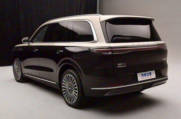 Бічна частина вирізняється чіткою горизонтальною лінією та великими 21-дюймовими легкосплавними дисками з багатоспицевим малюнком. Силует виглядає стримано, але солідно, а контрастне забарвлення кузова додає Fulwin T11 динамічності. У задній частині використано широкі горизонтальні ліхтарі з хромованою перемичкою, що візуально розширює автомобіль.