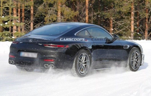 За чотирма круглими вихлопними патрубками можна припустити, що на тестах помічено базову версію Mercedes-AMG GT 43. Наразі вона оснащується 2,0-літровим турбованим чотирициліндровим двигуном потужністю 416 к.с., який працює у парі з дев'ятиступеневою автоматичною коробкою передач. Така модифікація здатна розганятися до 96 км/год приблизно за 4,5 секунди.