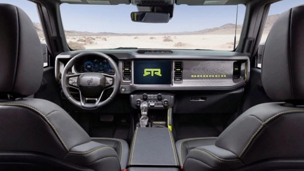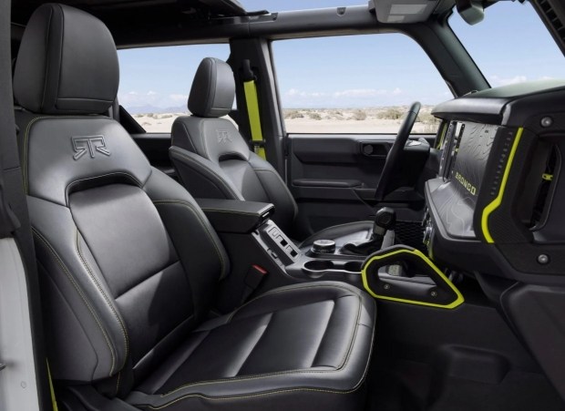 Втім, головний акцент у Bronco RTR зроблено не лише на техніці, а й на емоційному сприйнятті автомобіля, особливо в салоні. Інтер'єр розроблявся у співпраці з командою RTR і, за словами Ford, став «найвиразнішим» у всій лінійці моделі. Ключову роль тут відіграє фірмовий відтінок Hyper Lime, який проходить через увесь простір - від ременів безпеки та прострочки до вставок на передній панелі, ручок і дефлекторів вентиляції. Контраст із чорною шкіряною оббивкою створює відчуття динаміки й підкреслює позашляховий характер автомобіля.