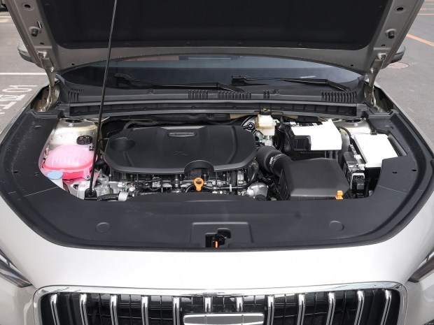 Передня частина автомобіля виконана у фірмовому стилі Geely 4.0 із вертикальною решіткою радіатора, що складається з 12 хромованих стовпців, і вузькими фарами з трисекційними LED-ходовими вогнями. За даними виробника, дальність освітлення сягає понад 170 метрів. Дизайнери Geely дотримались «золотої пропорції» 0,618 у лінії кузова, що візуально робить силует гармонійним і стрімким.