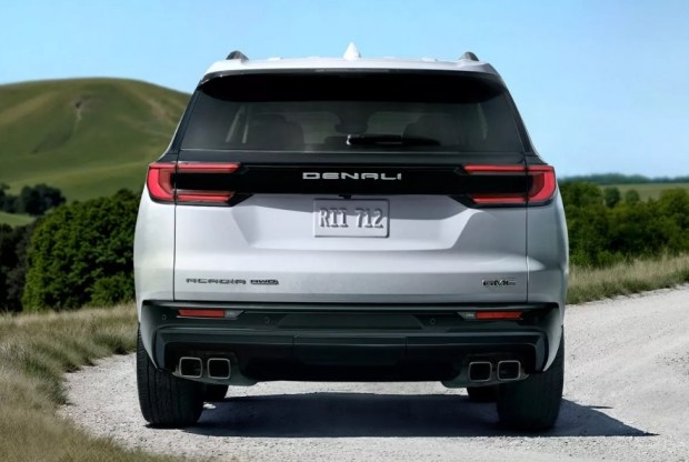 GMC Acadia Denali Ultimate не отримала кардинальних змін в екстер'єрі, проте компанія зробила акцент на деталях, які підкреслюють преміальний статус моделі. Передня решітка радіатора виконана у фірмовому стилі Vader Chrome, що додає автомобілю вишуканого вигляду. Світлодіодні ходові вогні мають анімовану функцію привітання, що посилює враження технологічності. Кросовер комплектується великими 22-дюймовими легкосплавними дисками з темним покриттям After Midnight, які надають автомобілю більш елегантного та одночасно агресивного вигляду.