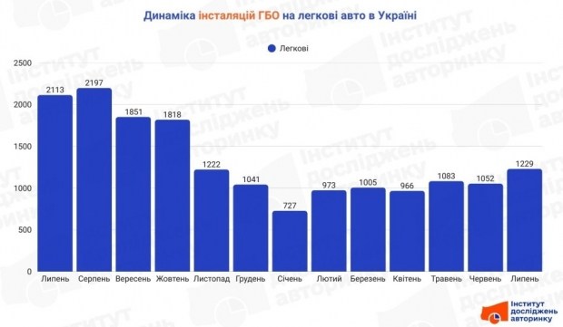 Сумарно впродовж минулого місяця ГБО офіційно з'явилося (враховані лише ті факти переобладнання, які зареєстровані сервісними центрами МВС) на 1229 легкових автомобілях. Це на 16,8% більше, ніж було у червні 2025, але суттєво менше, на 41,8%, ніж було рік тому, у липні 2024 р.
