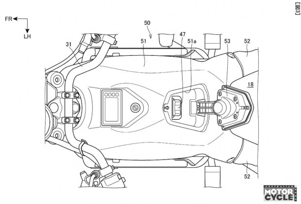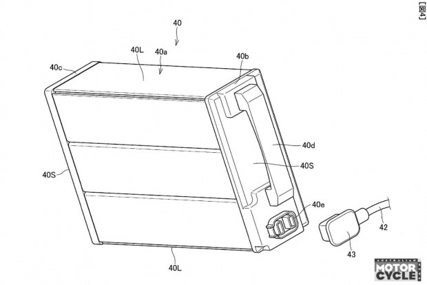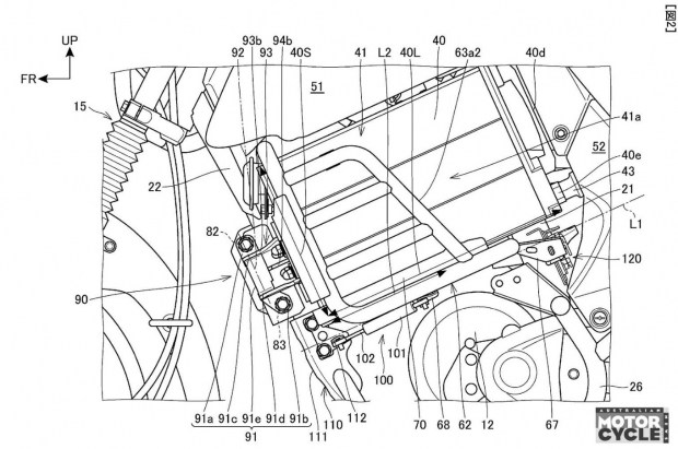 Саме батарейна система є центральною ідеєю патенту. Замість інтеграції всередину рами або жорсткого кріплення, кожен акумулятор розміщено у металевій клітці з обох боків мотоцикла. Ці клітки відкидаються вперед на шарнірах, дозволяючи акумуляторам відхилятися назовні та легко вийматися. Після встановлення клітки повертаються у вихідне положення, батареї входять у вирізи в «бакоподібному» облицюванні та фіксуються.