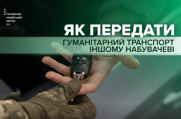 У такому випадку отримувач гуманітарної допомоги складає документ про перерозподіл транспортного засобу та оформлює новий акт приймання-передачі новому військовому набувачу. Після цього військовослужбовець звертається до сервісного центру МВС для тимчасової державної реєстрації транспортного засобу на своє ім'я на підставі: