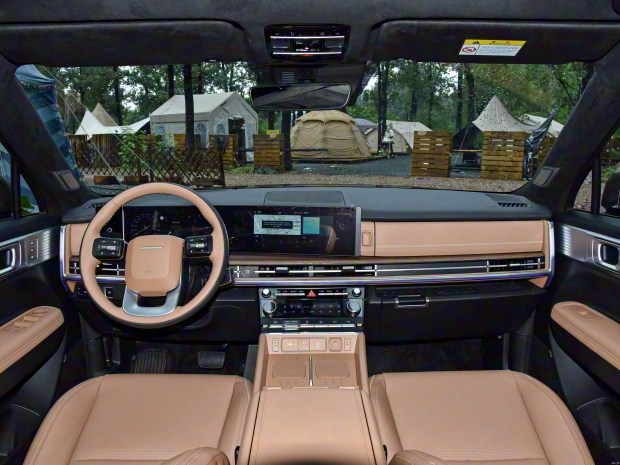 Інтер'єр також залишився без кардинальних змін, але відповідає рівню сучасного сімейного кросовера. Santa Fe оснащений двома об'єднаними екранами діагоналлю по 12,3 дюйма, проєкційним дисплеєм, двома бездротовими зарядними майданчиками для смартфонів, а також відсіком у центральному підлокітнику з функцією ультрафіолетової дезінфекції. Для китайського ринку модель пропонують у п'яти-, шести- та семимісному виконанні. Сидіння обтягнуті шкірою Nappa: передні крісла мають підігрів, вентиляцію та розвинену бічну підтримку, другий ряд оснащений електрорегулюванням, підігрівом, кнопками керування для пасажирів і можливістю швидкого складання, а третій ряд може повністю складатися, збільшуючи об'єм багажника.