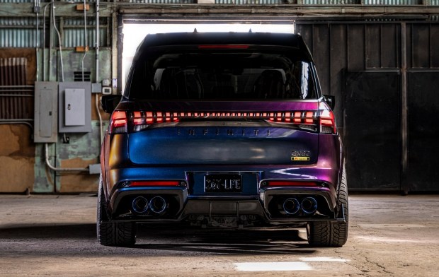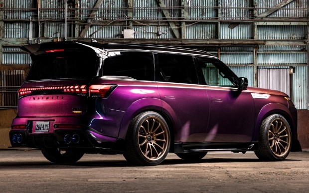 Відрізнити новий Infiniti QX80 R-Spec можна за карбоновим обвісом, збільшеним заднім спойлером, інакшими протитуманними фарами та чотирма вихлопними трубами.