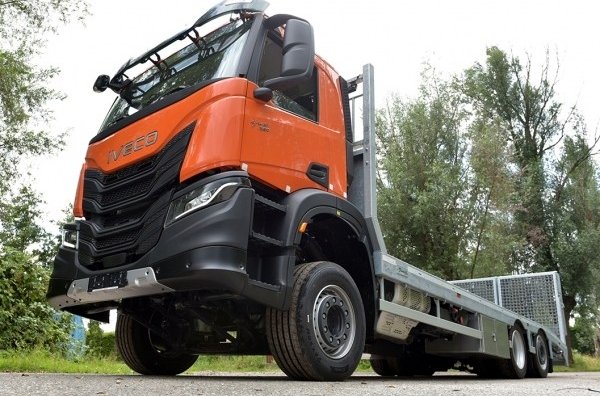 Нідерландська компанія Veldhuizen Trucks перелицювала класичне шасі Iveco S-Way в спеціальну алюмінієву платформу для перевезення техніки - вийшло стильно, безпечно та результативно.