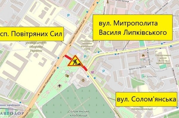 Із 25 до 28 липня, з 21:00 до 5:00, обмежуватимуть рух Солом'янською площею на ділянці від вул. Солом'янської до просп. Повітряних Сил та вул. Митрополита Василя Липківського. Про це повідомляють у КК «Київавтодор».