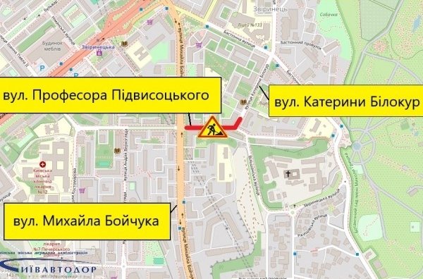Із 27 вересня частково обмежуватимуть рух вулицями Професора Підвисоцького та Катерини Білокур