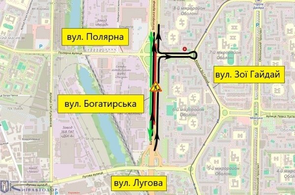 Із 28 квітня до 19 травня частково обмежуватимуть рух транспорту вулицею Богатирською. Про це повідомляють у КК «Київавтодор».