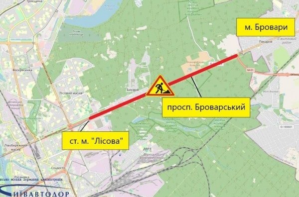 Дорожники виконуватимуть поточний ремонт асфальтобетонного покриття від ст. м. «Лісова» до м. Бровари. Роботи проводитимуть поетапно окремими ремонтними картами.