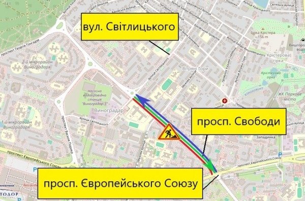 Обмеження пов'язані з початком капітального ремонту важливої транспортної магістралі в Подільському районі - проспекту Свободи. Важливою складовою цього ремонту буде облаштування елементів доступності.