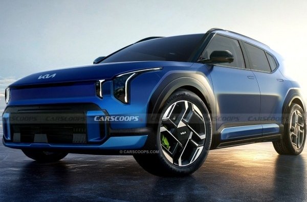 Дизайн EV2 збереже компактні міські пропорції у поєднанні з рисами кросовера. Передня частина вирізнятиметься вертикально розділеними фарами та світлодіодними ходовими вогнями у формі гачків, що тягнуться на передні крила. Версія GT отримає агресивніший вигляд із великою нижньою решіткою у стилі EV9, контрастними чорними вставками, великими алюмінієвими колесами діамантового фрезерування та яскраво-зеленими гальмівними супортами. Кузов матиме розширені колісні арки, масивний захист нижньої частини, майже вертикальну лінію даху та задні ліхтарі з гострою геометрією, інтегровані в облицювання задніх крил.