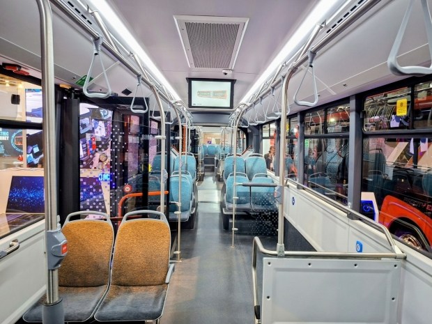На стенді також було представлено ще один електробус - Neocity 8.5M EV. Це модель середнього класу, яка при довжині 8,5 м вміщує 72 пасажири (місць для сидіння - 21). Вона комплектується батареями ємністю 198 чи 264 кВт-год, які живлять електромотор максимальною потужністю 235 кВт. Завдяки передній незалежній підвісці модель має найменший у класі радіус розвороту.