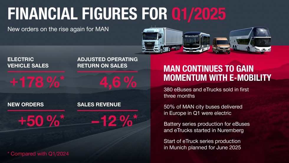 Попри невтішні результати в короткостроковій перспективі, компанія фіксує ознаки стабілізації на ринку й навіть помірного відновлення. Замовлення на нову техніку у першому кварталі 2025 року зросли на 50% у порівнянні з відповідним періодом минулого року, досягнувши рівнів, які востаннє фіксувалися наприкінці 2022-го та на початку 2023 року. Цей зростаючий попит свідчить про певне пожвавлення в галузі й може бути передвісником покращення показників у наступних кварталах. Керівництво MAN трактує це як сигнал до довгострокового зростання, якщо зовнішньоекономічна ситуація залишатиметься стабільною, а політика підтримки зеленої мобільності - послідовною.