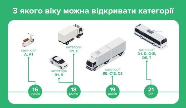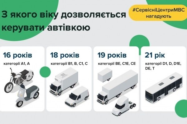 Відповідно до Закону України «Про дорожній рух», право на керування транспортними засобами надається особам, які досягли: